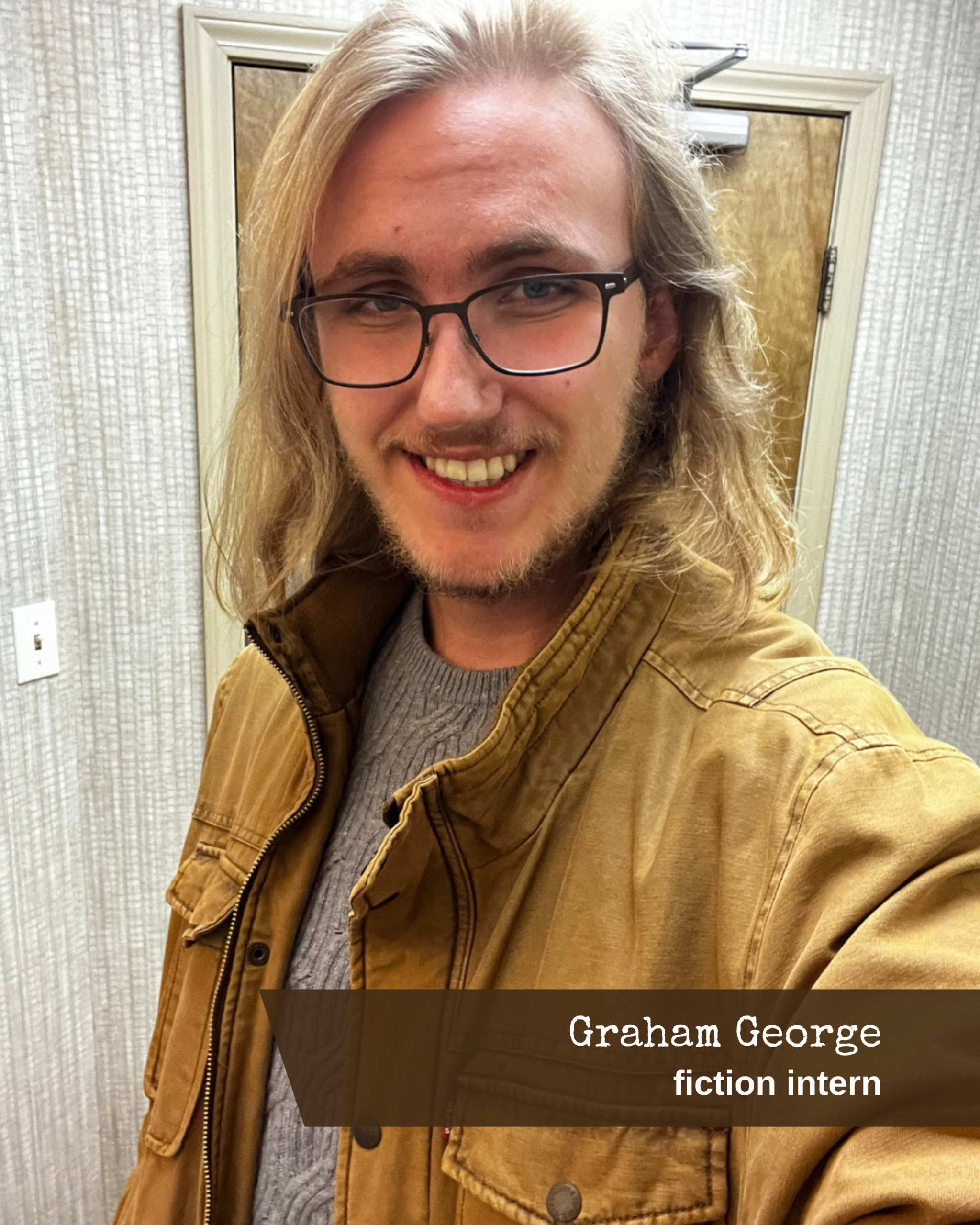Graham Medric George is a junior and Honors College student majoring in German and international studies (peace studies emphasis) at Mizzou, with minors in English and creative writing. He read fiction for The Missouri Review in fall 2025 and contributed to the internship development team. He is from Wentzville, near the St. Louis, MO area. He runs a free playlist-making service in his free time. He signed up to intern with TMR because he is a writer and wanted to take a peek into the publishing industry before graduation, and learn about what goes into writing an impactful story.
